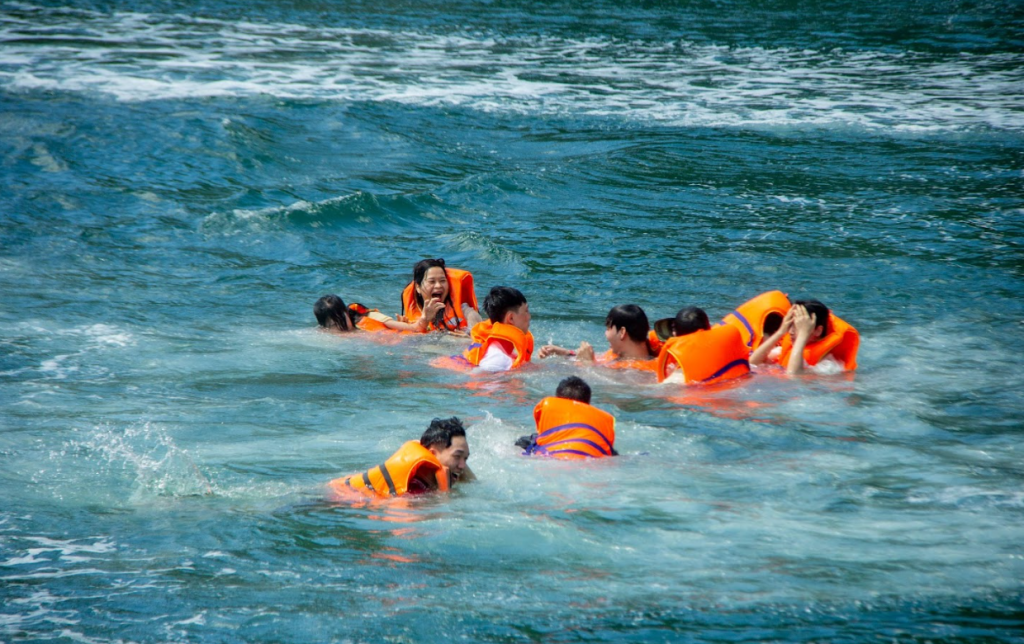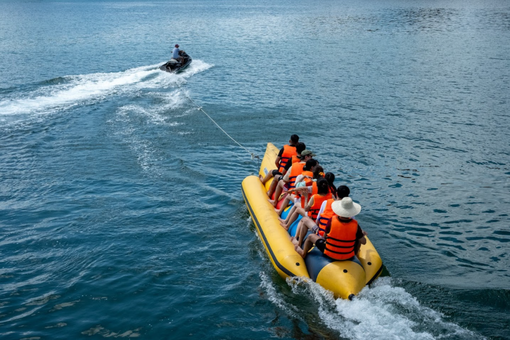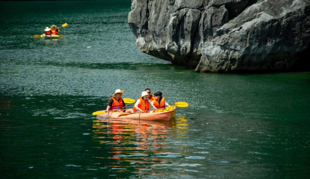 Các hoạt động như chèo kayak, chơi phao chuối, bơi giữa vịnh, tham quan đảo Khỉ mang đến cảm giác phấn khích và gắn bó.